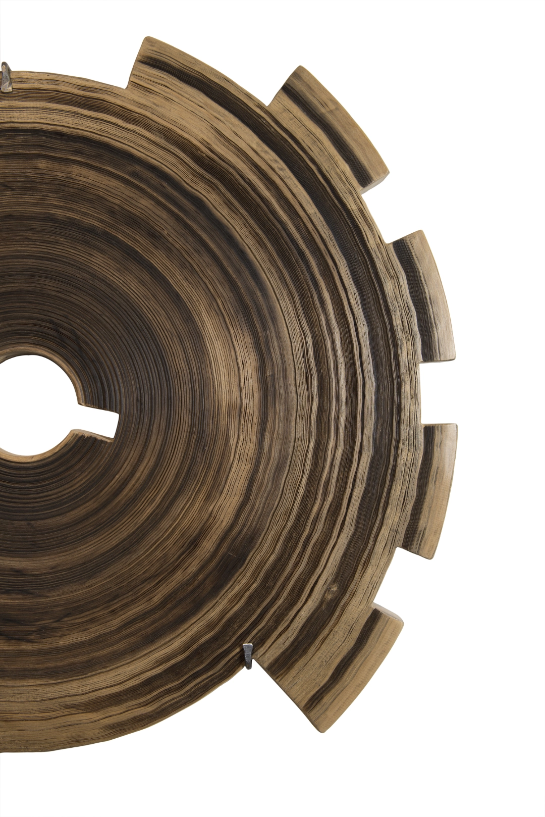 Les œuvres de Jean-François Auber explorent ainsi la frontière entre la fragilité du papier et la robustesse du bois, créant des pièces où la matière se métamorphose et interroge la perception du spectateur. Cette approche technique lui permet d’explorer des thématiques liées à la transformation, à la mémoire de la matière et à la nature même de la sculpture contemporaine.